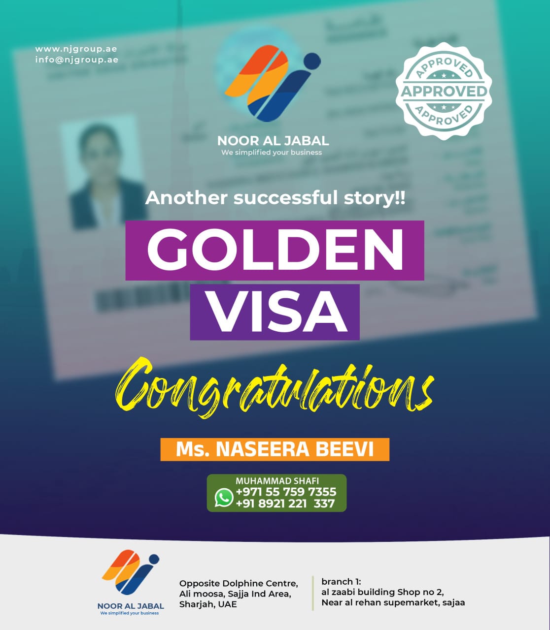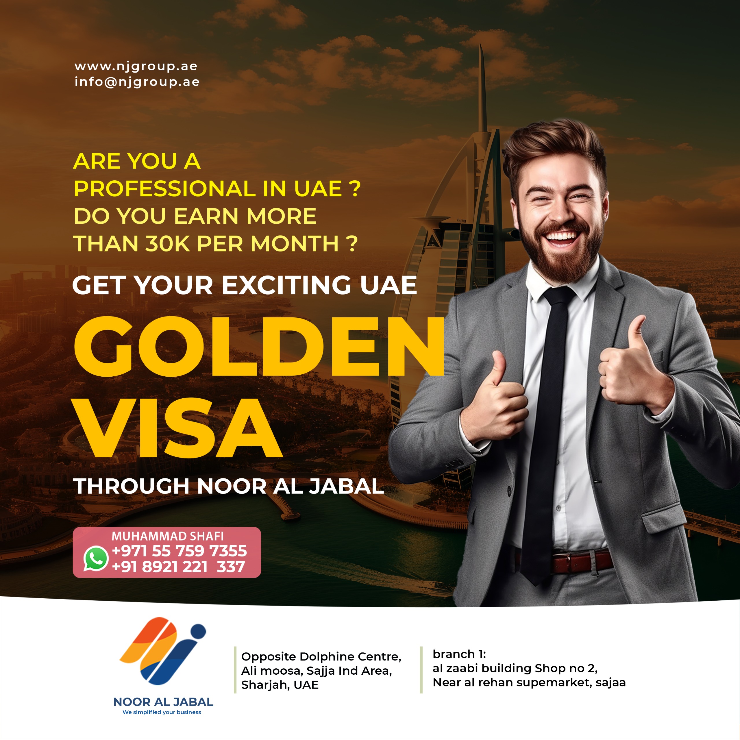 Noor Al Jabal , we are your trusted partner in navigating the UAE’s visa and documentation services. With a strong commitment to efficiency, accuracy, and customer satisfaction, we specialize in assisting individuals, investors, entrepreneurs, and professionals in securing the prestigious UAE Golden Visa.